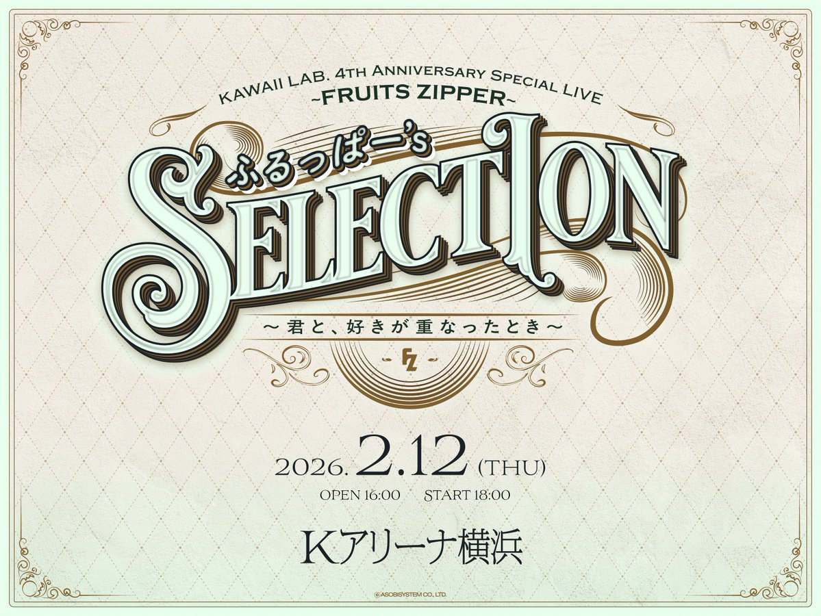 2月12日「KAWAII LAB. 4th Anniversary Special LIVE 〜FRUITS ZIPPER〜」 Kアリーナ 横浜公演 当日券販売のお知らせ